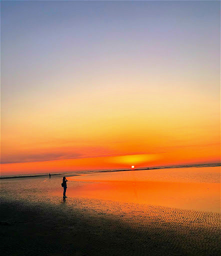 因為安排的兩個行程實在都比我們預期的早結束,所以回去竹北吃新橋燒肉的路上,我們臨時決定去最近很熱門的海之聲看看夕陽,海之聲附近也算好停車,停完車之後走路不到五分鐘就可以看到海邊了,海之聲最著名的通往海裡的路已經被颱風吹斷了,所以海之聲就變成普通的海邊了,我們也就不湊熱鬧的沒在斷了的路上拍照,不過今天的夕陽非常美麗,好久沒看到一顆完整的太陽沒入海裡了,覺得有點港動。