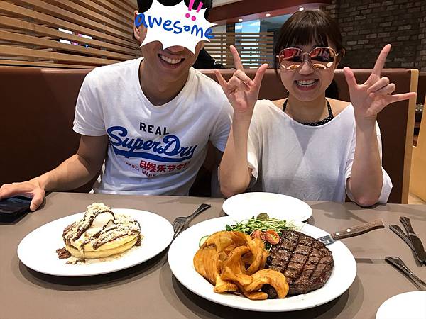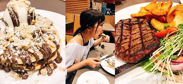 我們四人點了一份牛排一份鬆餅,澳洲的食物份量都蠻驚人的,