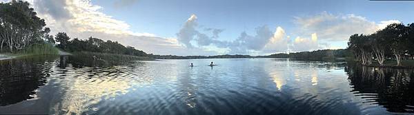 平靜的湖除了可以游泳之外還有很多人在玩SUP我好生羨慕~~~