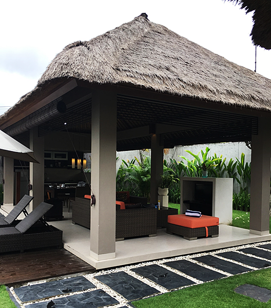 終於到了住villa這一天,和之前住的價差真的很大是不是,當時在找villa的時候,我比較注意的點是整體的空間和泳池大小,Villa Jerami算是台灣人很常住的一間,有很多照片精美的分享文可以參考(裡面還有網美的比基尼照呢~),叛逆如我真的很不想跟大家住一樣的,所以我評比了超級多間的,之後還是決定住這了,就是因為空間和泳池大小我覺得是最完美的,泳池旁邊是草地又有茅草屋頂,就決定是你了!(我在意的點好奇怪啊)